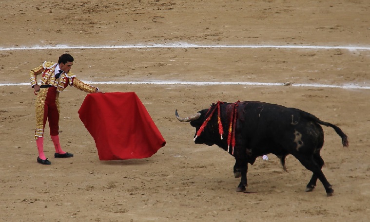 El alguacilillo da la espalda al toro para premiar al torero. Paradojas de la tauromaquia