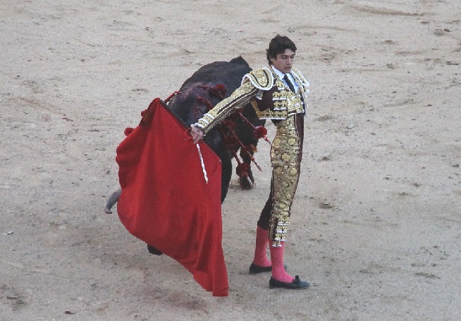Del matador alicantino, le diré que es la primera vez que le veo torear, y vaya cómo ha toreado. Hasta hoy, solo vi una maravillosa puesta en escena y un toreo despegado y superficial, amén de su máxima especialidad: la suerte suprema. Hoy en el quinto ha estado bien desde el saludo por verónicas de muchos quilates hasta el estoconazo final aguantando, pasando por un ajustado quite por chicuelinas y una faena plena de toreo fundamental, ligada, ajustada, toreando muy despacio, en especial un pase de pecho sacado de muy abajo. Una faena rotunda, completa de cabo a rabo, que ha alcanzado el justo premio de las dos orejas del toro de Victoriano del Río.
